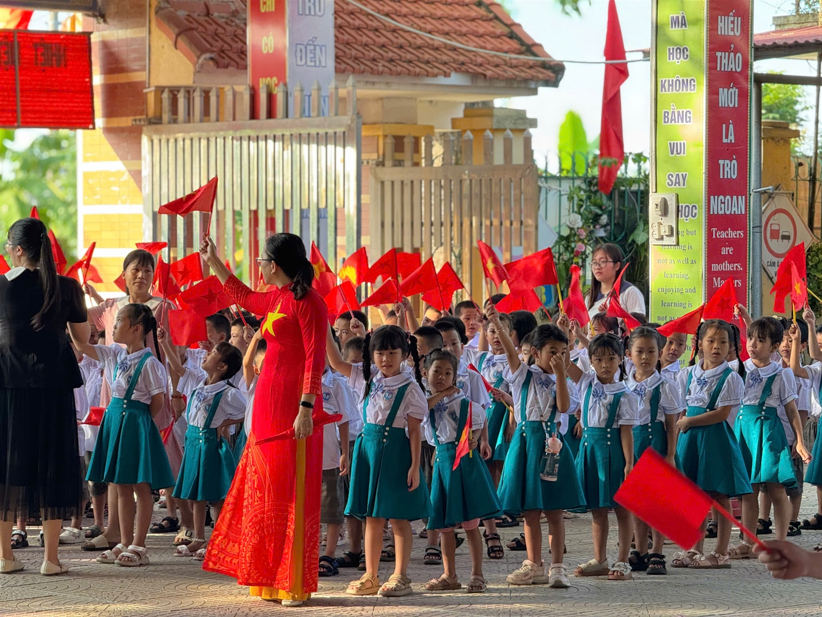 Năm học mới luôn đặc biệt bởi sự xuất hiện của những gương mặt mới – các em học sinh lớp 1. Với ánh mắt tròn xoe đầy bỡ ngỡ, những bàn tay nhỏ xíu nắm chặt tay cha mẹ, các em bước vào cánh cổng trường trong sự chào đón nồng nhiệt của thầy cô và anh chị lớp trên. Khoảnh khắc ấy, sân trường như bừng sáng bởi niềm tin và hi vọng. Những em nhỏ hôm nay sẽ là những chủ nhân tương lai, những mầm xanh góp sức dựng xây đất nước.
