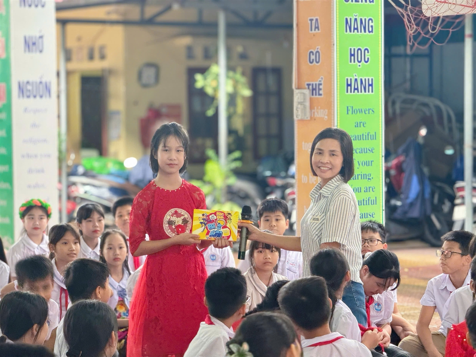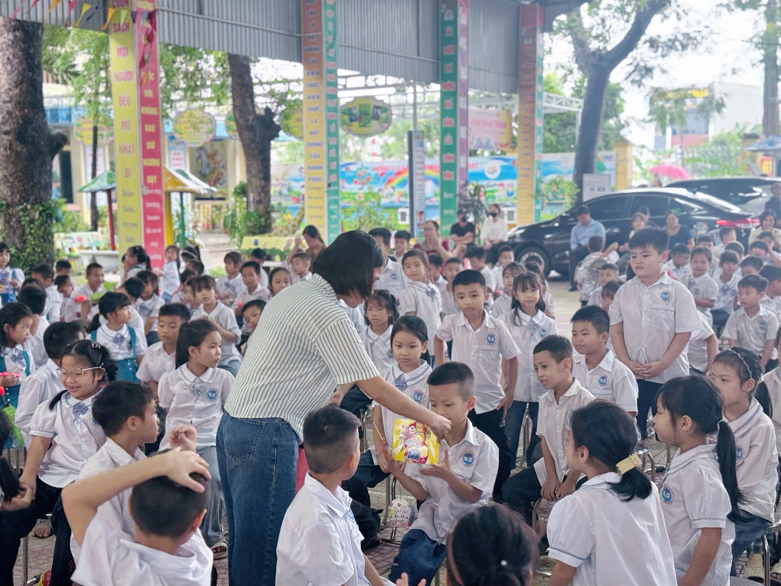 Đặc biệt, trong chương trình “Vui Tết Trung thu” năm 2025 có 40 học sinh gia đình hoàn cảnh khó khăn được nhận 40 phần quà ý nghĩa của nhà trường và liên đội và ông Bùi Đức Hợp - Đại diện Công ty Cổ phần Sữa Quốc tế LOF - Thương hiệu Kun! hỗ trợ, để các em có một mùa Trung thu vui vẻ, đầm ấm.