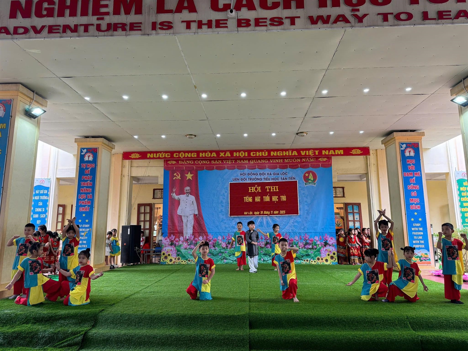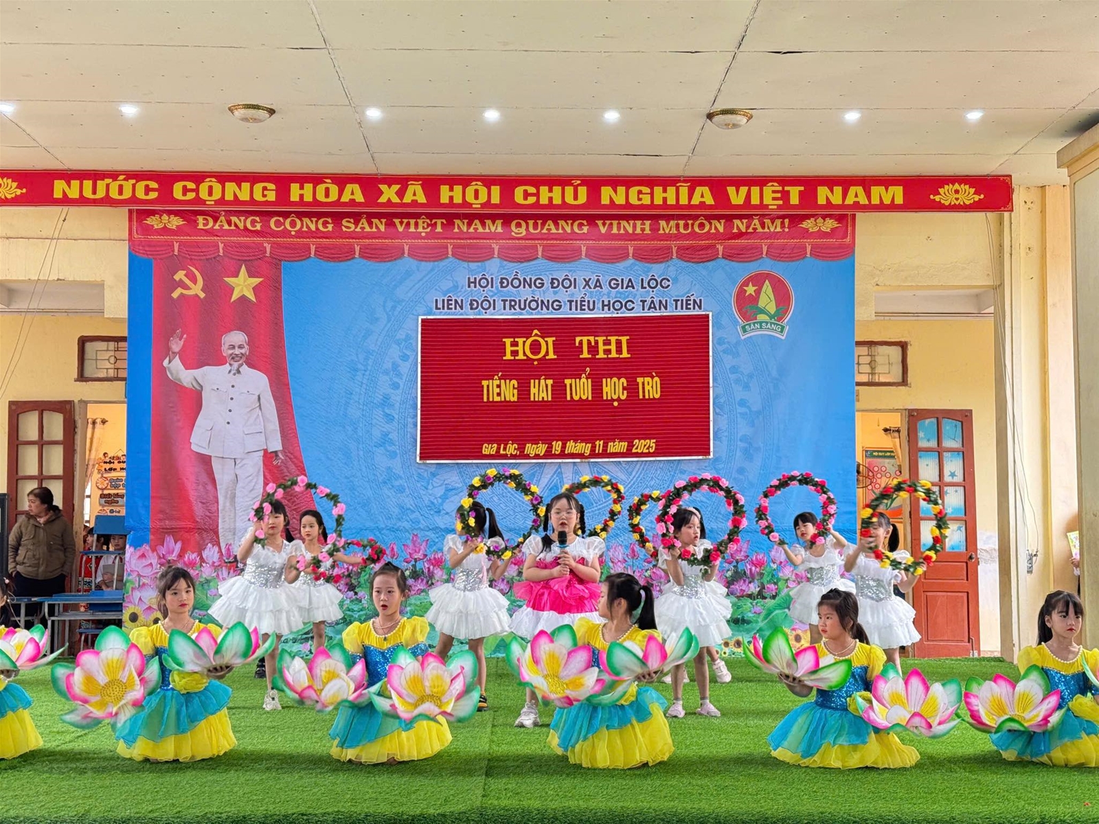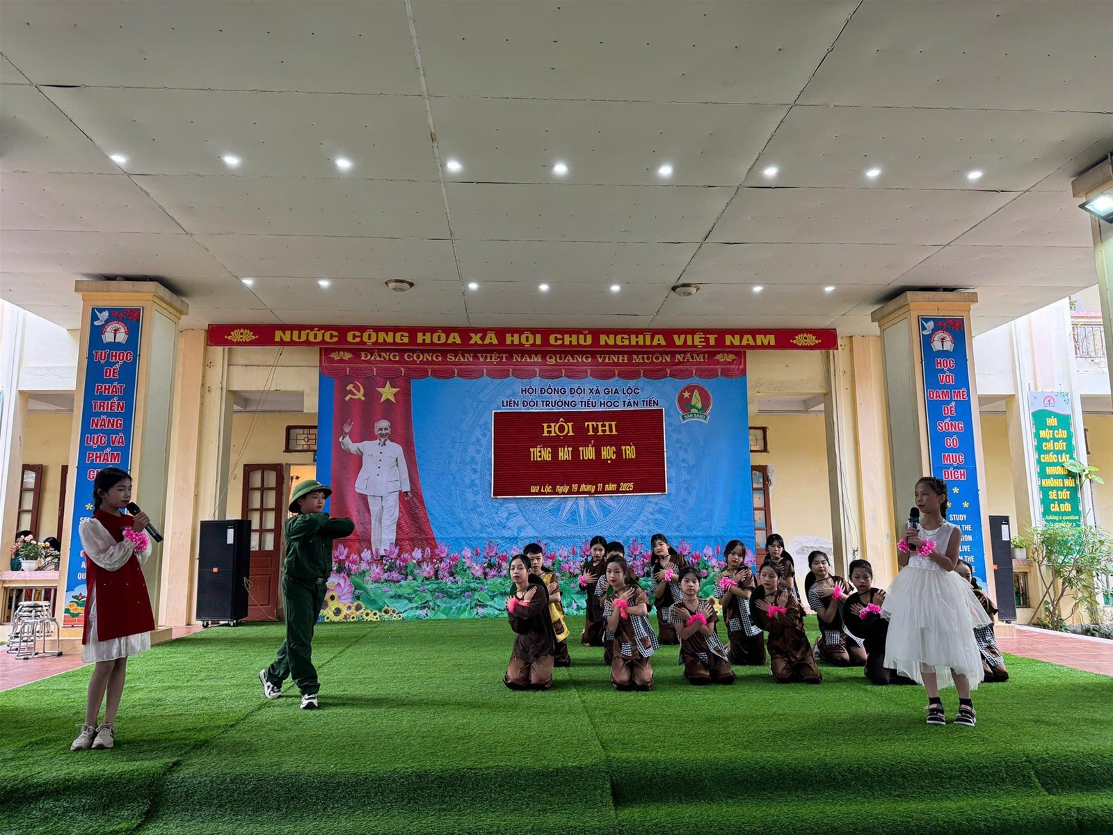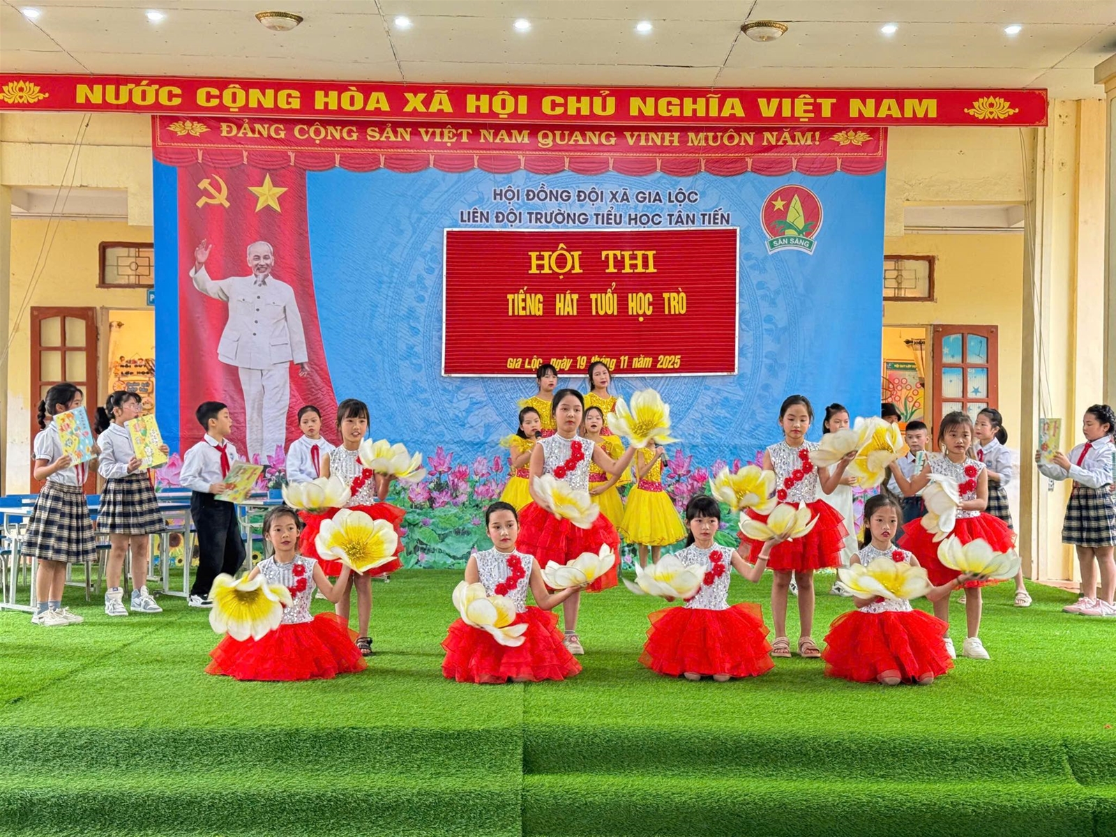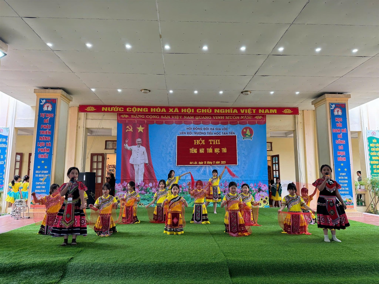 Vui tươi, hào hứng, phấn khởi, múa hát với cả lòng mình. Đó là phong trào văn nghệ của các khối lớp dự thi Tiếng hát học trò vào ngày 19/11/2024. Hội thi tạo điều kiện để học sinh, giáo viên giao lưu, thắt chặt hơn nữa tinh thần đoàn kết đồng thời giáo dục tư tưởng chính trị cho học sinh, tăng cường giáo dục thẩm mỹ, đạo đức, lối sống nhằm đáp ứng yêu cầu giáo dục toàn diện cho học sinh phổ thông, góp phần thực hiện tốt phong trào thi đua “Xây dựng trường học thân thiện, học sinh tích cực”. Nội dung văn nghệ xoay quanh chủ đề về mái trường, thầy cô, bạn bè; ca ngợi truyền thống về ngày Nhà giáo Việt Nam 20/11.