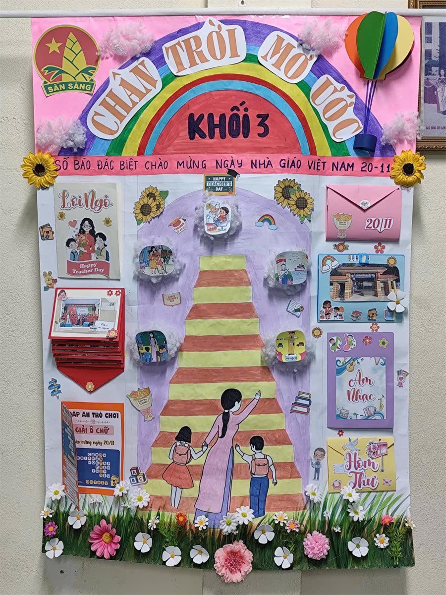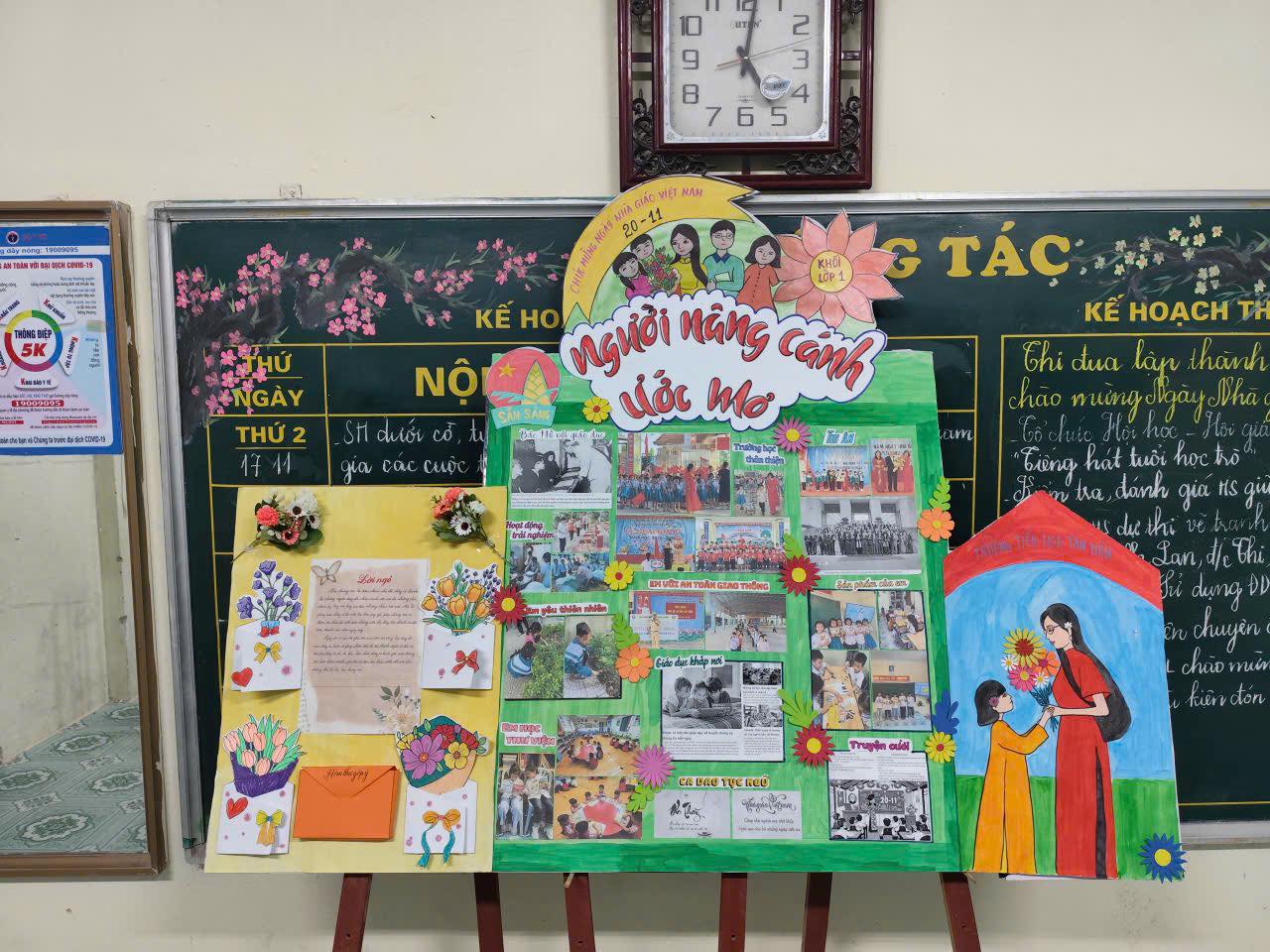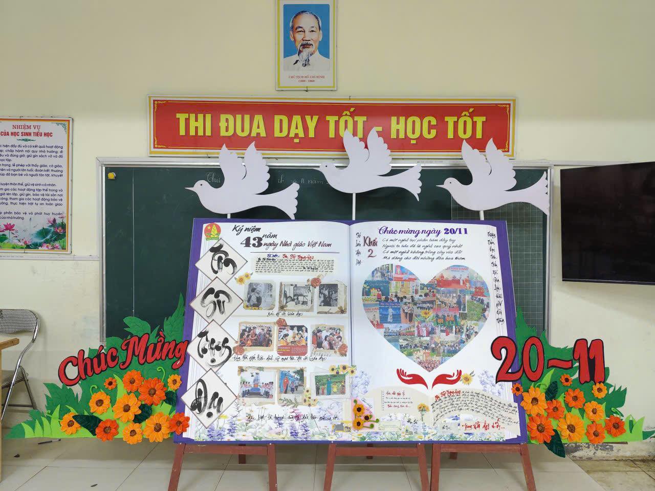 Chúng ta đều biết rằng môi trường giáo dục có ảnh hưởng rất lớn đến sự hình thành và phát triển nhân cách của học sinh. Không gian lớp học chính là ngôi nhà thứ hai của các em. Trong ngôi nhà đó, học sinh được tiếp thu những tri thức bổ ích, được giáo dục, rèn luyện thành người. Môi trường học tập càng thân thiện, gần gũi càng hấp dẫn, thu hút sự hứng thú, say mê học tập của học sinh và chắc chắn hiệu quả tiết dạy sẽ cao nhất. Vì vậy việc trang trí lớp học đẹp, sáng tạo và phù hợp với đặc điểm tâm sinh lý của trẻ luôn được các nhà trường quan tâm và nó càng trở nên sôi nổi hơn mỗi dịp 20/11 về. Hưởng ứng phong trào thi đua chào mừng ngày Nhà giáo Việt Nam 20/11, hội thi trang trí lớp học, làm báo ảnh (khối 1, 2, 3), báo tường (khối 4, 5) luôn đem đến những điều bất ngờ, sáng tạo, không những được thầy cô và học sinh nhiệt liệt hưởng mà phụ huynh cũng rất quan tâm.