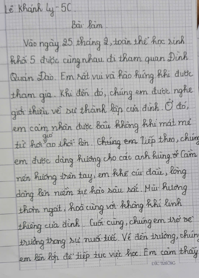 Qua từng dòng chữ, có thể cảm nhận rõ rằng chuyến tham quan không chỉ dừng lại ở một hoạt động ngoại khóa, mà đã trở thành nguồn cảm hứng để các em học tập tốt hơn, sống có trách nhiệm hơn và biết trân trọng những giá trị truyền thống của địa phương.